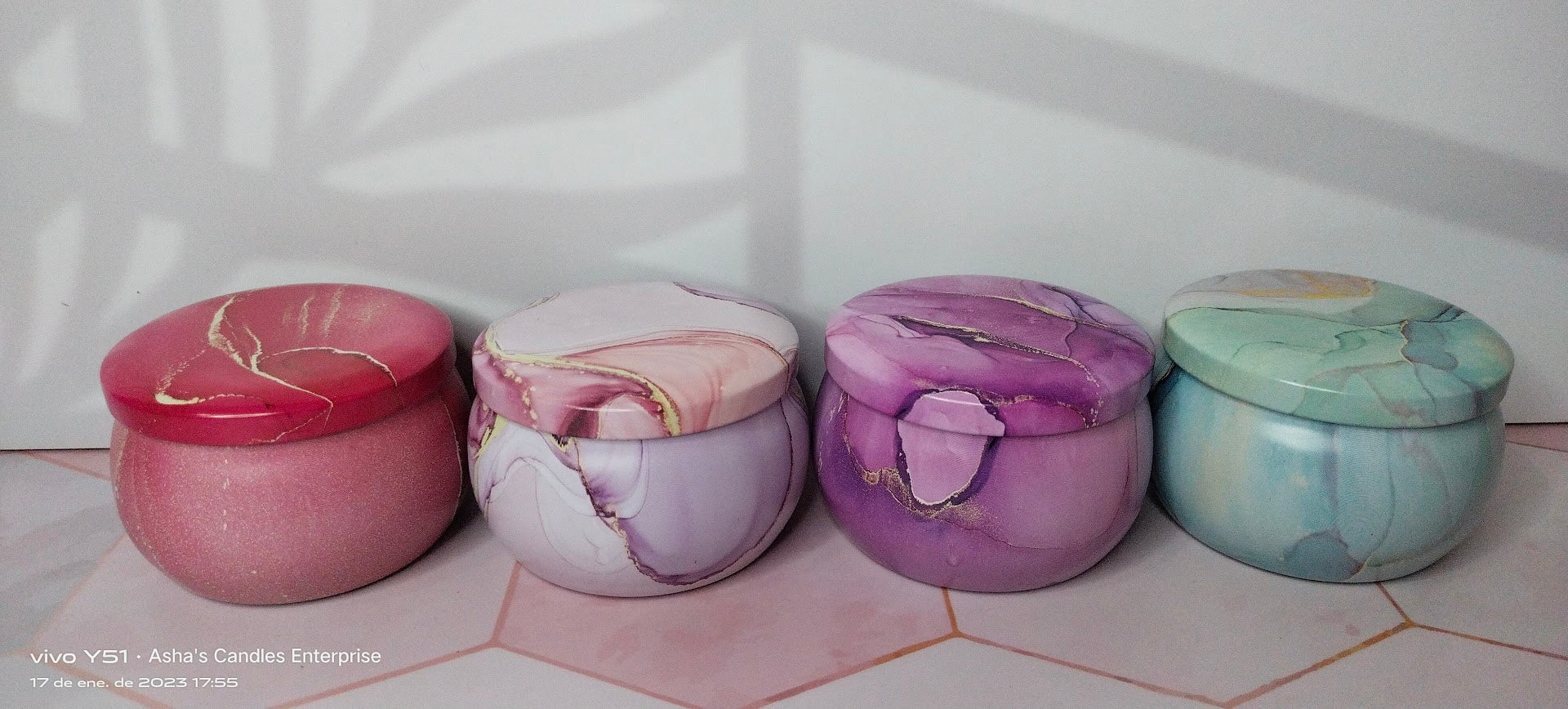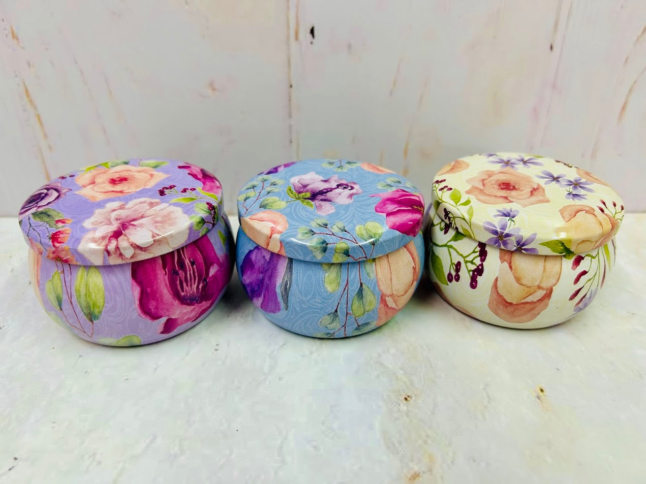 Envase de Hojalata con Diseño Exclusivo - Diseños disponibles: Mándala, Mármol y Rosas - Medidas: 7 cm de diámetro x 5 cm de alto - Capacidad: 120 ml aprox.