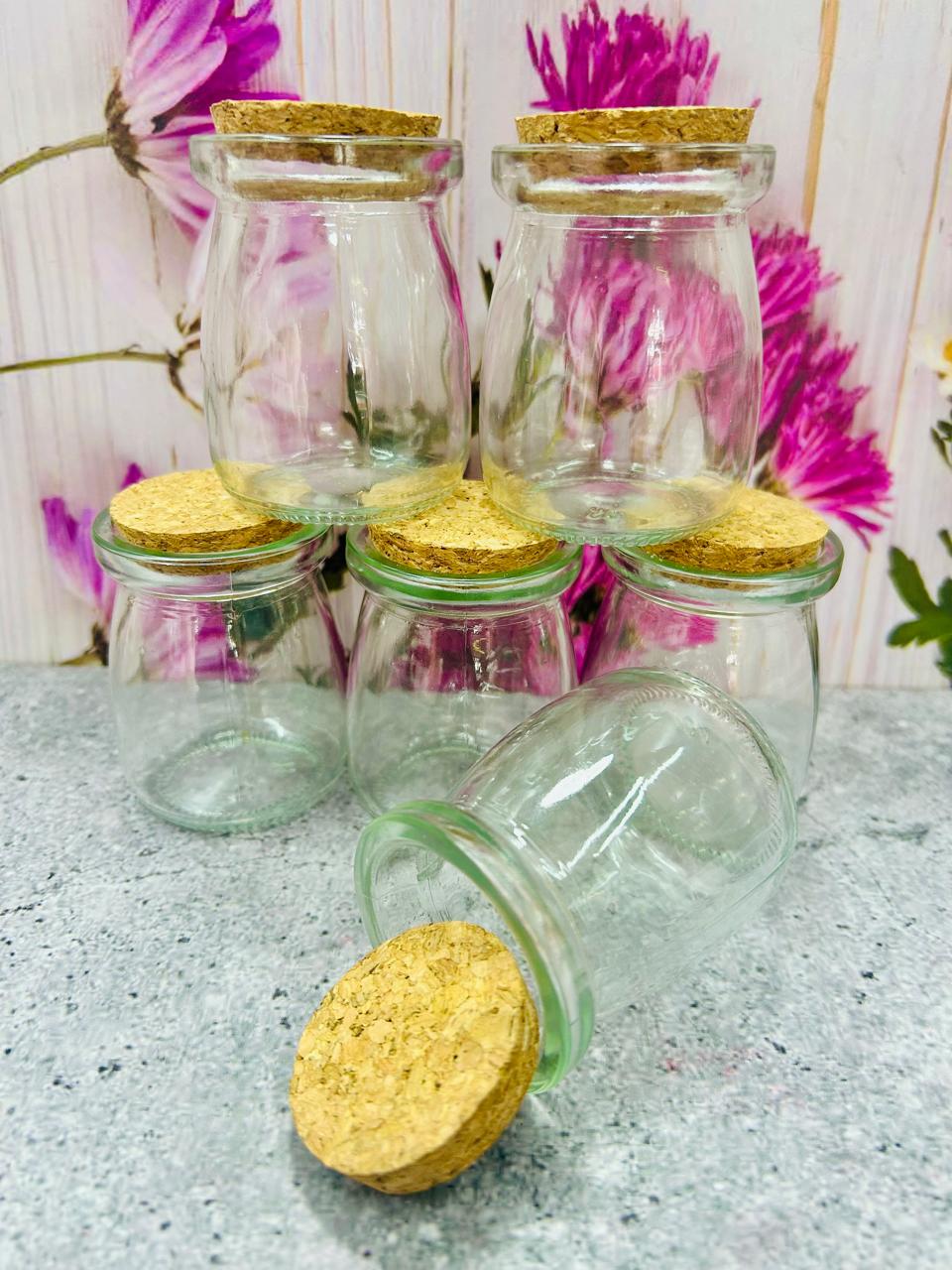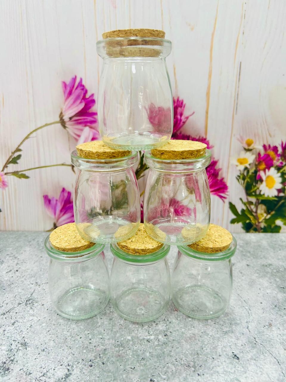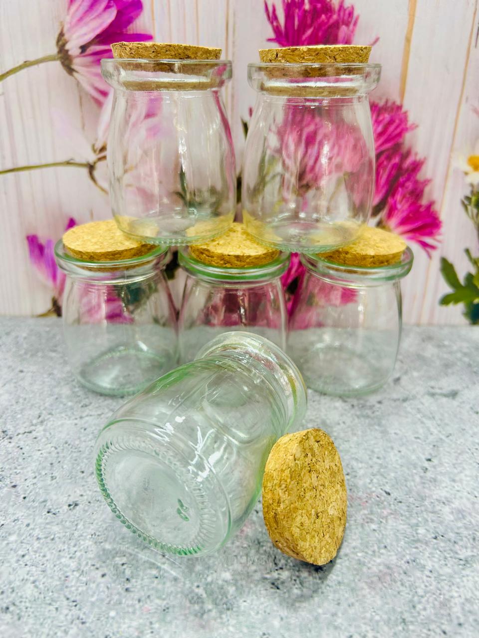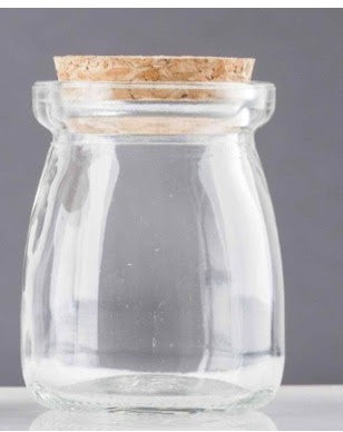 Envase de Vidrio con Tapa de Corcho - Medidas: 5.5 cm de diámetro x 7 cm de alto - Capacidad: 100 ml aprox.