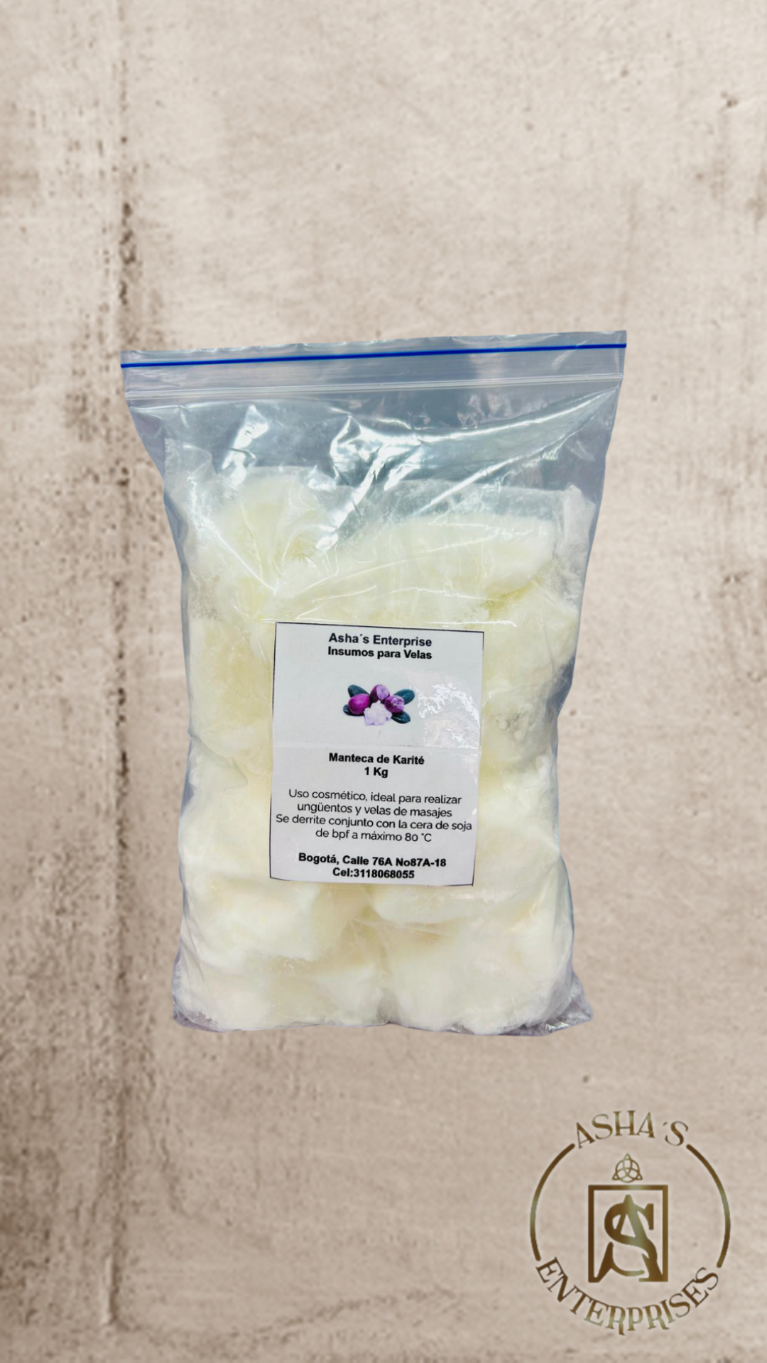Nombre INCI: Butyrospermum Parkii Butter Origen: Vegetal (semillas del árbol de karité) Apariencia: Sólido cremoso, color marfil a amarillo pálido Olor: Suave, característico Punto de fusión: 31 °C – 45 °C Solubilidad: Insoluble en agua, soluble en aceites Aplicaciones: Cosmética, jabonería, velas cosméticas, cremas, bálsamos, productos capilares Propiedades: