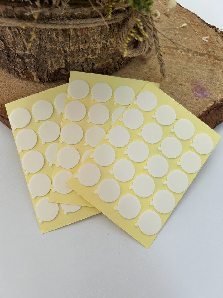 Sobre de 20 pegatinas las cuales le permitirán fijar con facilidad sus pabilos al fondo del envase.