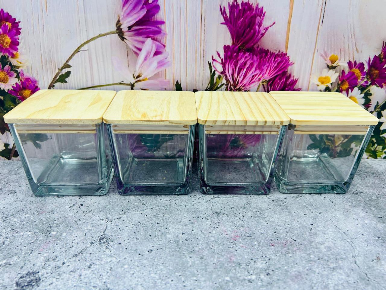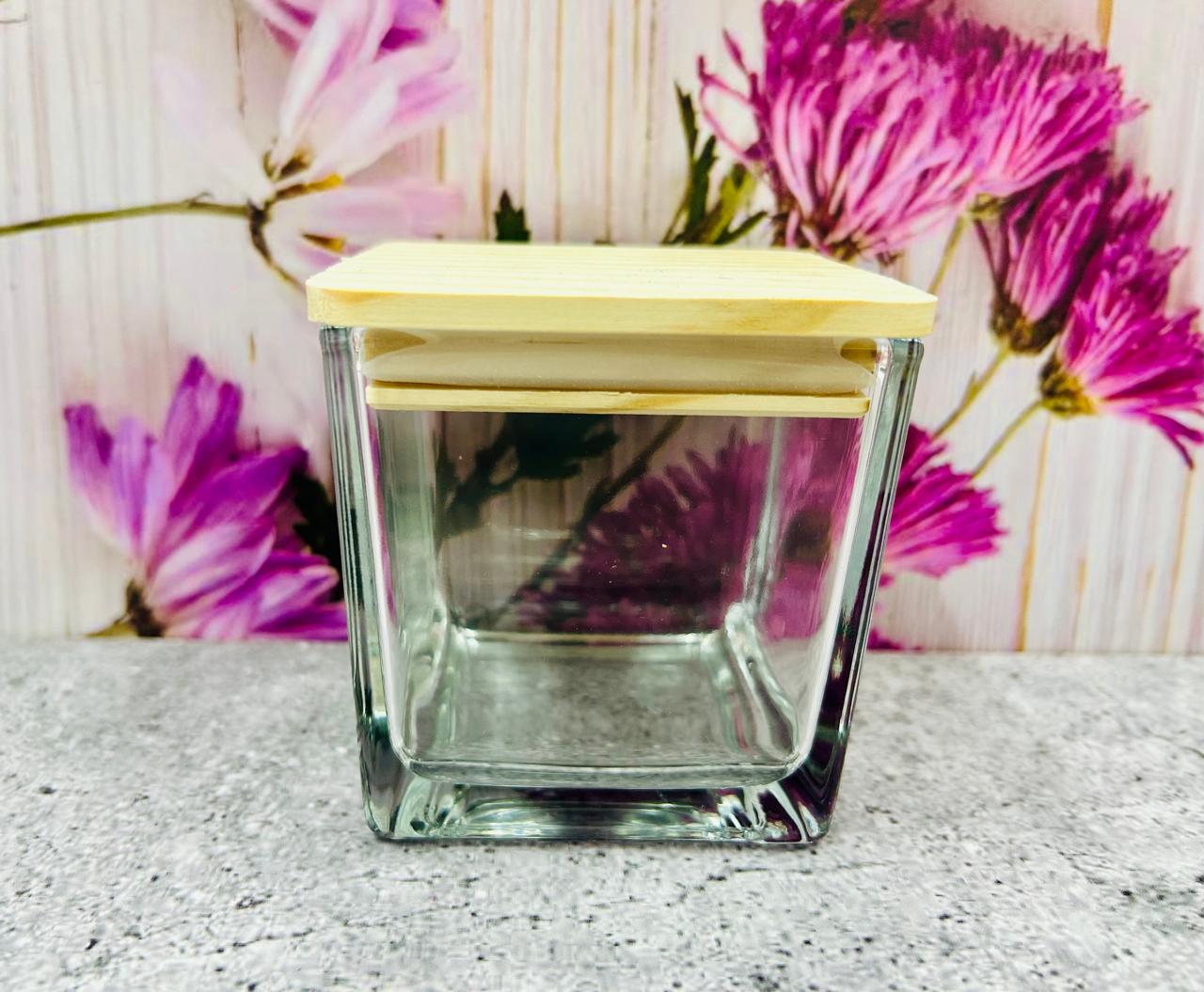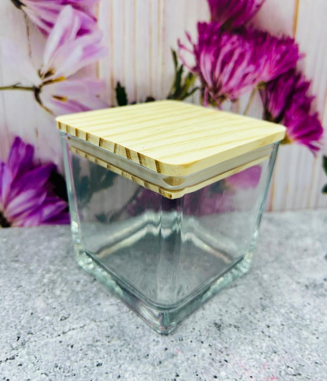 Vaso de Vidrio Cuadrado Grande con Tapa de Bambú - Medidas: 8 cm x 8 cm x 8 cm - Capacidad: 300 ml