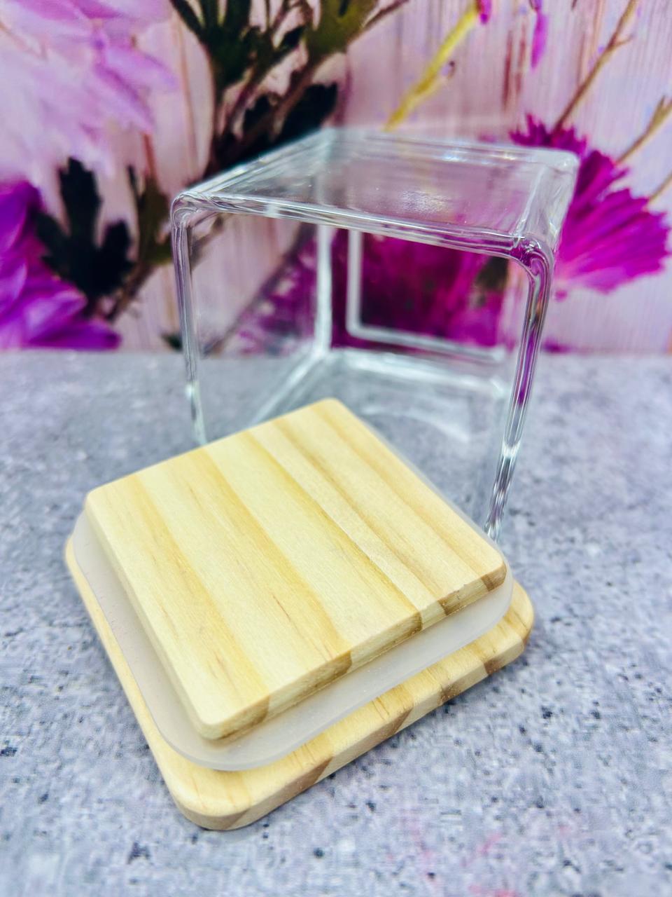 Vaso de Vidrio Cuadrado Pequeño con Tapa de Bambú